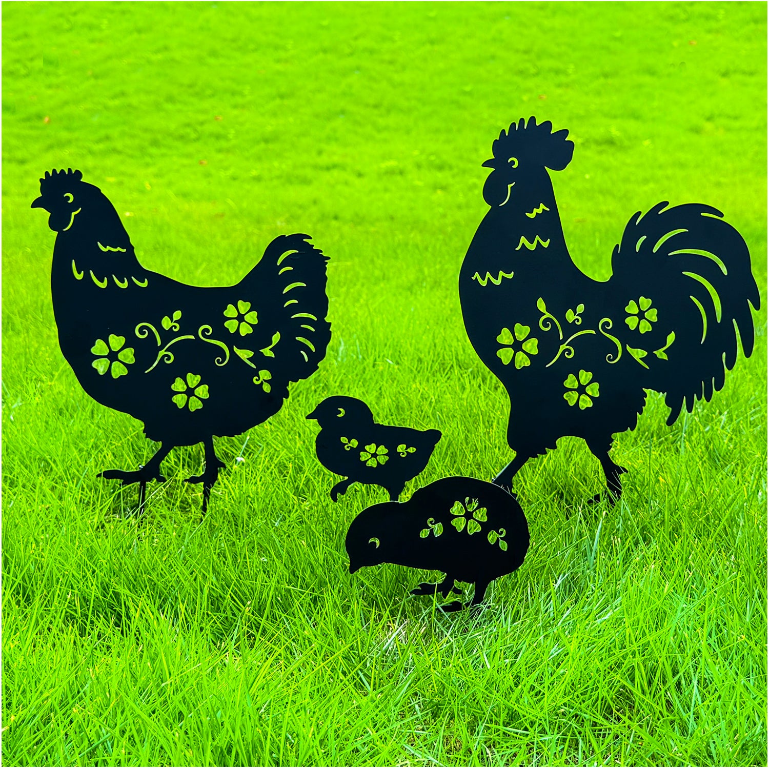 Chicken Metal Decorative Garden Stakes Chicken Gifts for Women/Men Chicken Lovers Gifts Silhouette Statues for Yard Art, Outside, Patio, Outdoor Decor, Garden Decorations, Lawn Ornaments